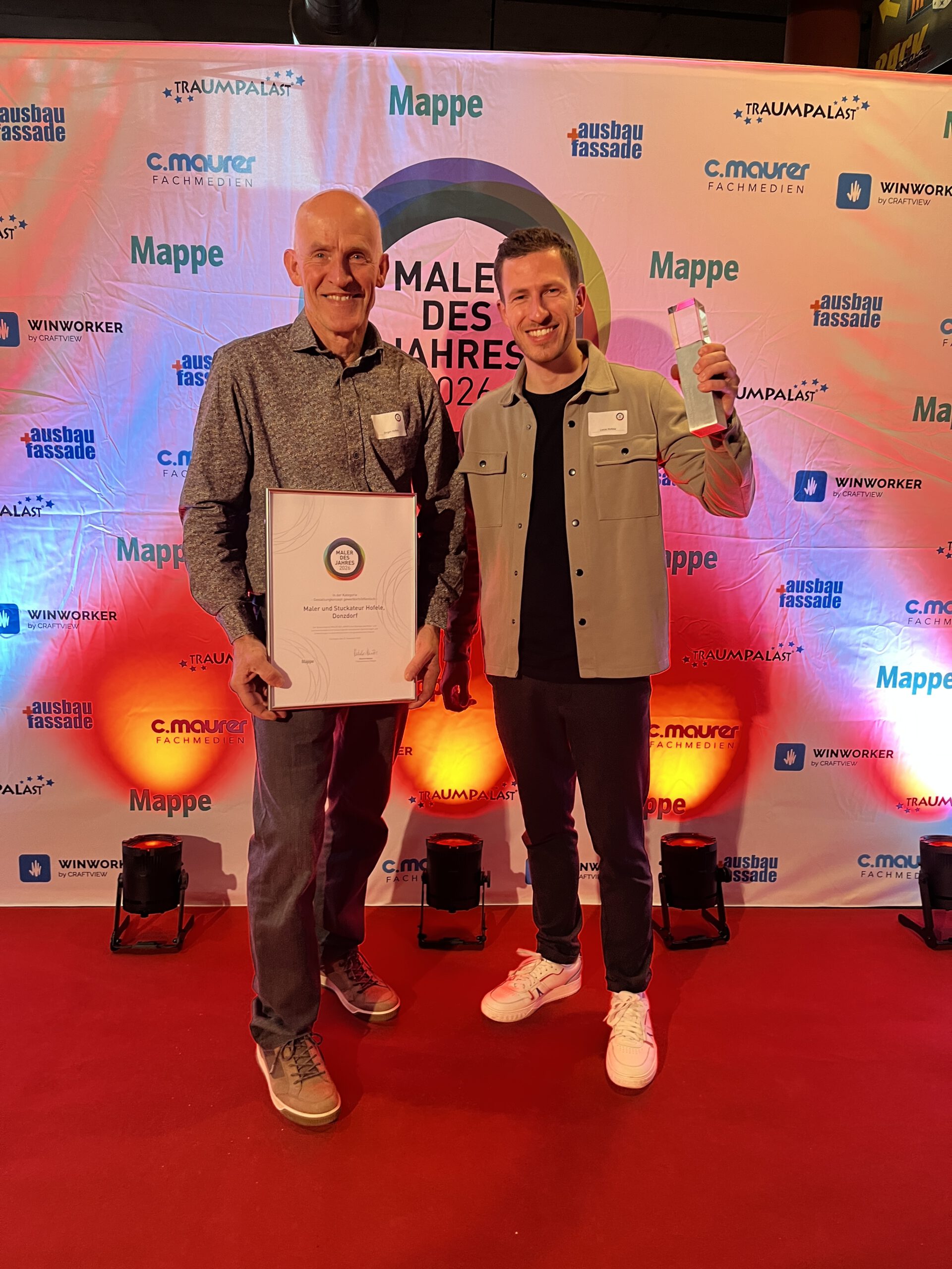 Wir wurden zum MALER DES JAHRES 2026 gekürt! Im Rahmen einer Veranstaltung im Traumpalast in Esslingen wurde uns von der Malerzeitschrift Mappe, einer Medienmarke der C. Maurer Fachmedien GmbH, der renommierteste Award im Maler-