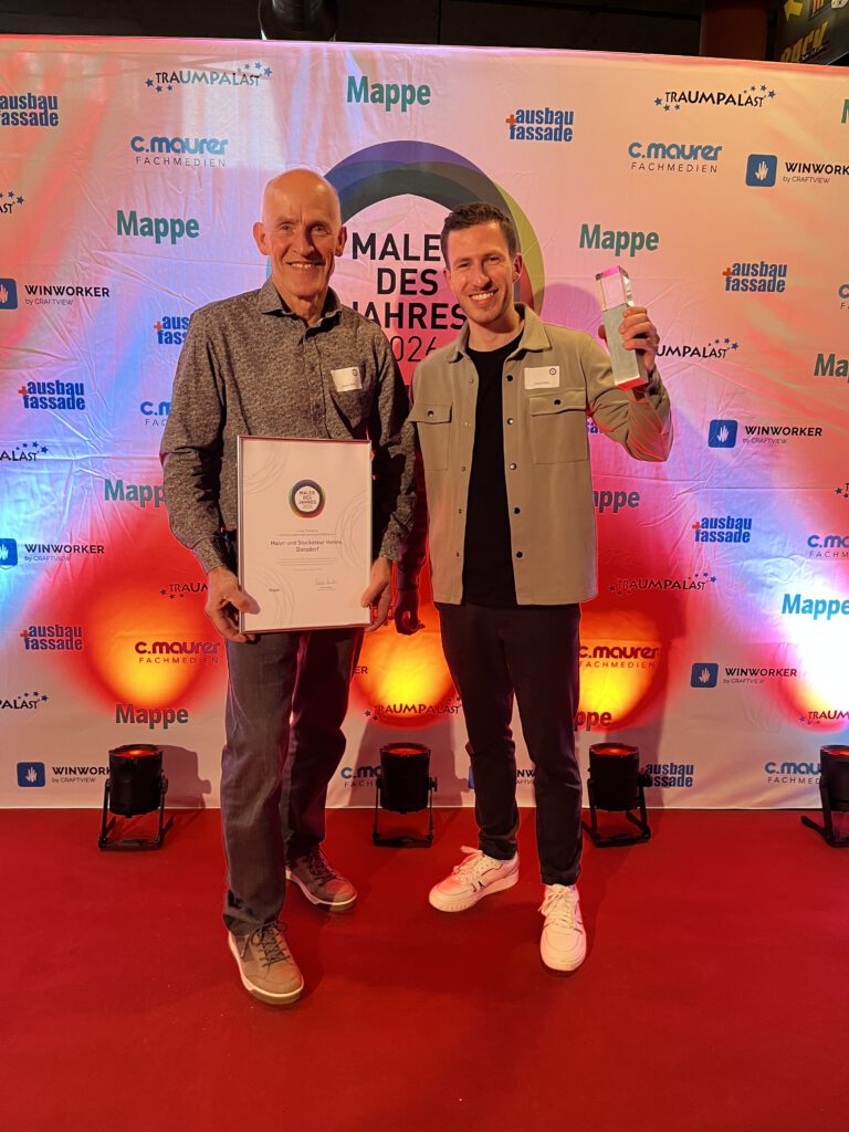 Im Rahmen einer Veranstaltung im Traumpalast in Esslingen wurde uns von der Malerzeitschrift Mappe, einer Medienmarke der C. Maurer Fachmedien GmbH, der renommierteste Award im Maler- und Stuckateurhandwerk verliehen: